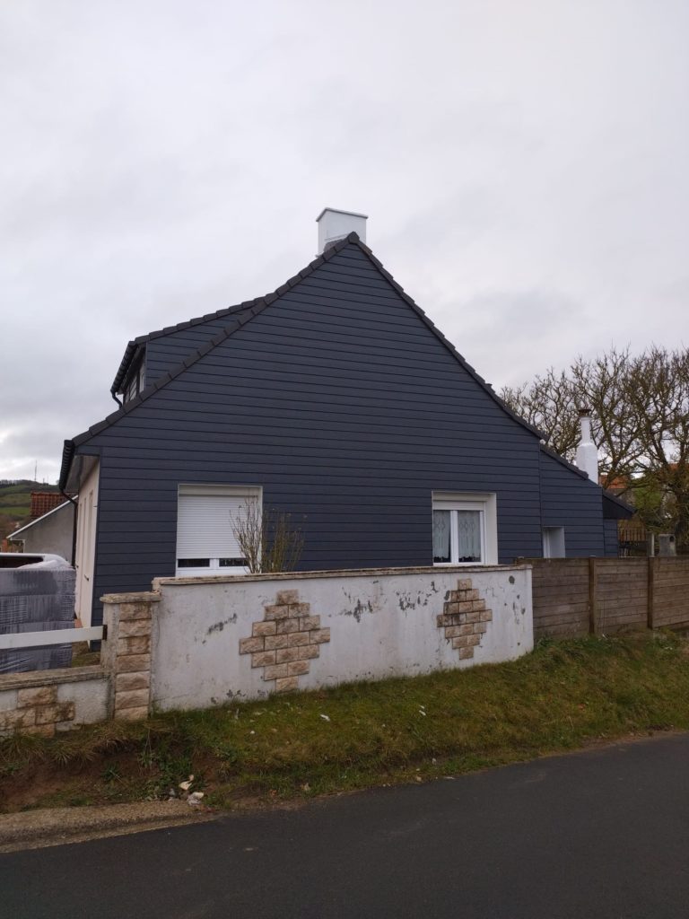 L’habillage extérieur moderne apporte une dimension esthétique forte, transformant radicalement l’aspect de cette habitation traditionnelle du Boulonnais.